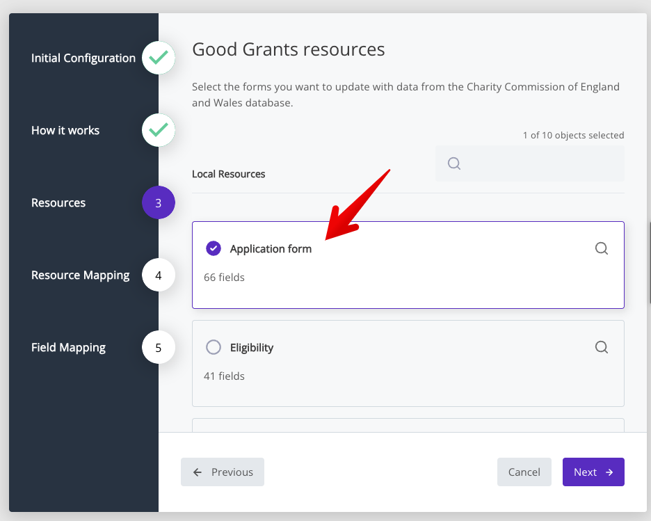 - In the 'Resources' tab, choose your desired form from the Local Resources list