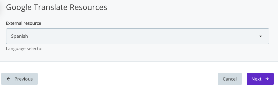 - At the bottom of the 'Resources' tab, choose the language you want to translate into