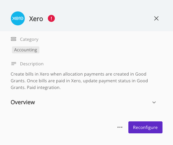 - This paid integration also requires an active Xero account. To activate or trial the Good Grants integration, please contact our client success team.